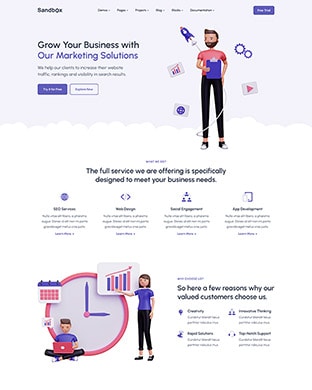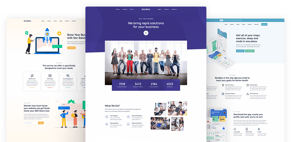 Sandbox includes amazing features and elements to create rich and attractive pages.